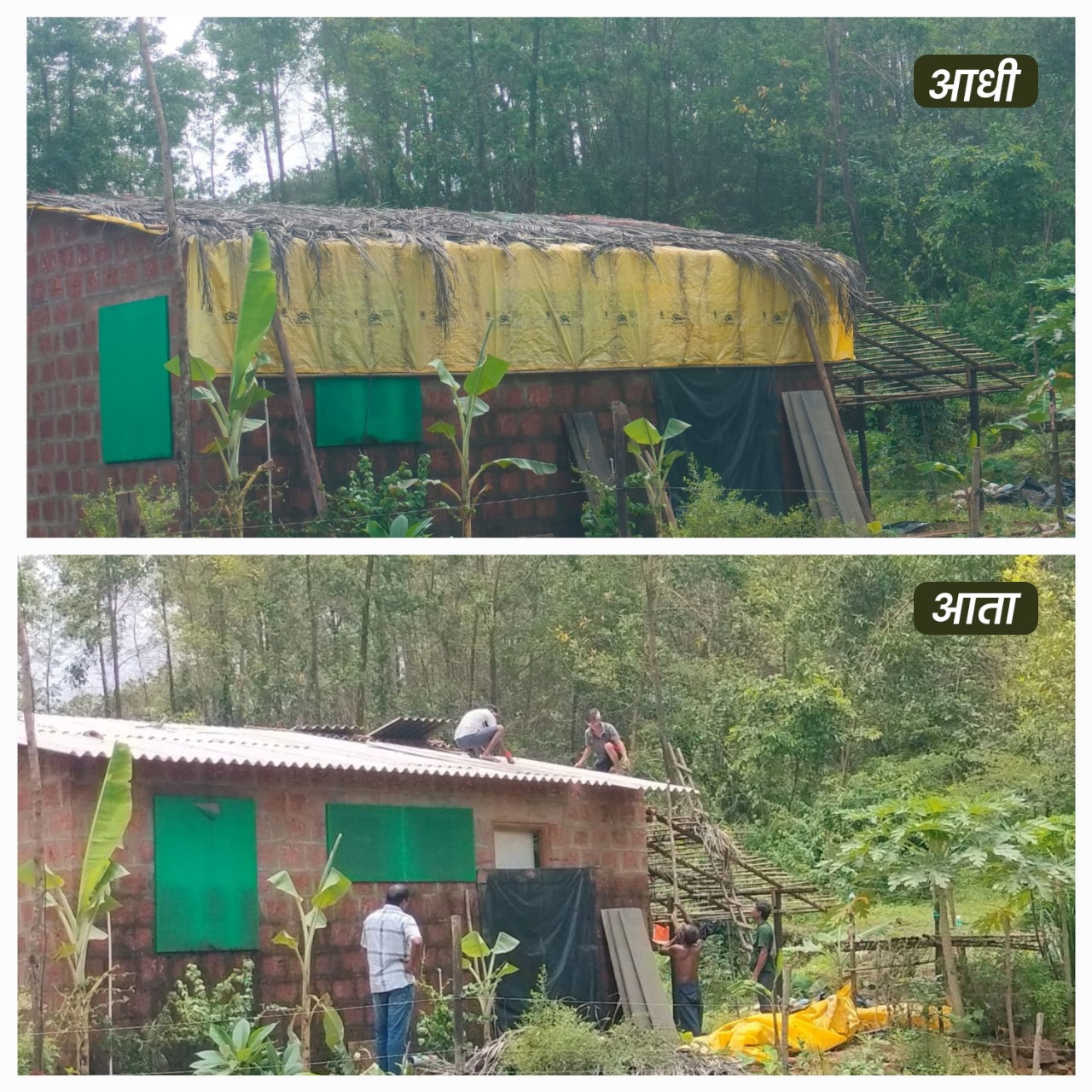 सावंतवाडी : वाफोलीमधील रमेश मेस्त्री या शेतकऱ्याचे छप्पर वादळी वाऱ्यासह कोसळत असलेल्या मुसळधार पावसाने उडून गेले. वाफोली सरपंच श्री उमेश शिरोडकर, उपसरपंच श्री विनेश गवस यांच्या माध्यमातून ही कैफियत भाजपा युवा मोर्चा प्रदेश उपाध्यक्ष श्री विशाल परब यांच्या कानावर पोहोचली. तातडीने या अडचणीची दखल घेत सरपंच श्री उमेश शिरोडकर, उपसरपंच श्री विनेश गवस व भाजपा पदाधिकाऱ्यांच्या माध्यमातून विशाल परब यांनी रमेश मेस्त्री यांच्या घराचे छप्पर पूर्ण करून दिले. भाजपा कार्यकर्त्यांना आपला परिवार मानत त्यांच्या पाठीशी उभे राहण्याचा लौकिक आजवर ऐकत आलो होतो, आज त्याचा अनुभव घेतला, असे भावनोत्कट उद्गार मेस्त्री कुटुंबियांनी काढले.