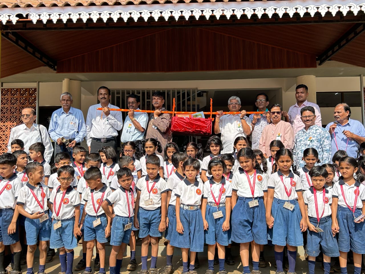 महाराष्ट्र गीतांनं कार्यक्रमास प्रारंभ झाला. मराठी भाषा दिनी जयंती निमित्त कविवर्य वि. वा. शिरवाडकर अर्थात कुसुमाग्रज यांच्या प्रतिमेला पुष्पहार अर्पण करून अभिवादन करण्यात आले. तसेच सर्वोत्कृष्ट गीतकार पुरस्कार जाहीर झाल्याबद्दल मालवणी कवी दादा मडकईकर व शैक्षणिक क्षेत्रात क्रांती घडवून आणणारे अच्युत सावंत भोसले यांचा कोमसापच्यावतीनं सत्कार करण्यात आला. याप्रसंगी मनोगत व्यक्त करताना श्री. भोसले म्हणाले, अभिजात भाषेचा दर्जा प्राप्त झाल्यानंतर साहित्यिक मंडळींच्या उपस्थितीत मराठी भाषेचा गौरव करण्याच भाग्य आमच्या प्रशाळेला लाभलं. मातृभाषा जपण्याचं काम आम्ही करत आहोत. सीबीएससी पद्धतीत शिक्षण देताना मराठीसह इतर भाषांचेही संस्कार विद्यार्थ्यांवर करत आहोत. मराठी भाषेतील शक्तीची ओळख मुलांना करून देत आहोत असे प्रतिपादन त्यांनी केले.