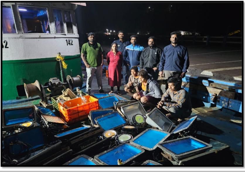 रत्नागिरी : राज्याचे मत्स्य व्यवसाय व बंदरे मंत्री नितेश राणे यांच्या स्पष्ट निर्देशानंतर मत्स्य व्यवसाय खाते अधिक आक्रमक झाले असून अनधिकृत मासेमारीवर कारवाई केली जात आहे. शुक्रवारी रात्री जयगड येथे एल.ई. डी. नौकेवर कारवाई करण्यात आली आहे. यामधे ३ तांडेलांसह अंदाजे 3 ते 4 लाख रुपयांची लाईट, जनरेटर व इतर सामग्री जप्त करण्यात आली आहे. दि. 7/03/2025 रोजी रात्री सुमारास जयगड समोर 17°20.10.5N 72°59.02.4E मत्स्यव्यवसाय विभागाचे अंमलबजावणी अधिकारी श्रीम. स्मितल कांबळे, सहाय्यक मत्स्यव्यवसाय विकास अधिकारी (परवाना अधिकारी, जयगड) व श्री. स्वप्निल चव्हाण, सहाय्यक मत्स्यव्यवसाय विकास अधिकारी (परवाना अधिकारी, गुहागर) हे नियमित गस्त घालत होते. यावेळी राज्याच्या जलधी क्षेत्रासाठी परवाना असलेली मोहम्मद हनिफ हसनमिया तांडेल, रा. मिरकरवाडा, रत्नागिरी यांची नौका अल-हज-हसन- नों. क्र. IND-MH-4-MM-5701 द्वारे महाराष्ट्रातील जलधी क्षेत्रात जयगड समोर अनधिकृतरित्या एल.ई.डी. लाईट व्दारे मासेमारी करत असताना पकडले. या नौकेवर नौका तांडेलसह 3 खलाशी होते.