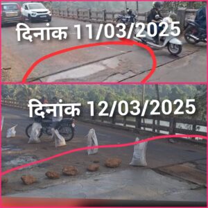 सावंतवाडी : तालुक्यातील सातार्डा – न्हयबाग पुल धोकादायक बनला असून महाराष्ट्र राज्याच्या बाजूने रस्ता आणि पुलाच्या मध्ये घातलेल्या स्टीलच्या प्लेट्स तुटून दोन महिने झाले. तसेच याबाबत संबंधित यंत्रणेला याबाबत कल्पना देऊनही व संबंधित यंत्रणेच्या अधिकाऱ्यांनी पाहणी करून महिना झाला तरी याबाबत प्रशासनाकडून काहीच उपाययोजना करण्यात न आल्याने येथील वाहनचालक, नागरिक नाराज असून एखादा बळी जाण्याची वाट प्रशासन बघत आहे काय? अशी बातमी मंगळवार दिनांक ११ मार्च २०२५ रोजी ‘सत्यार्थ महाराष्ट्र न्यूज’ या चॅनेलला प्रसिद्ध होताच त्याची २४ तासाच्या आत सार्वजनिक बांधकाम विभागाने दखल घेऊन तुटलेल्या स्टीलच्या प्लेट्स काढून त्याठिकाणी नवीन स्टीलच्या प्लेट्स बसवण्याचे काम आज बुधवार दि. १२ मार्च २०२५ रोजी सुरु केले आहे. त्यामुळे वाहन चालक, स्थानिकांनी समाधान व्यक्त करुन सत्यार्थ न्यूज आणि पत्रकार संजय पिळणकर यांचे विशेष आभार मानले आहेत.