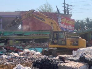दरम्यान गुरुवारी पोलीस बंदोबस्तात ही बेकायदेशी बांधकाम जमीनदोस्त करण्यात आले. या मातीत मोठ्या प्रमाणात फर्निचर व गाद्या भरण्यात आल्या होत्या. ते सर्व सामान बाहेर काढून बेकायदेशीर इमारत तोडण्याचे काम हाती घेण्यात आले. यावेळी महामार्गावर पोलीस बंदोबस्त ठेवण्यात आला होता.
