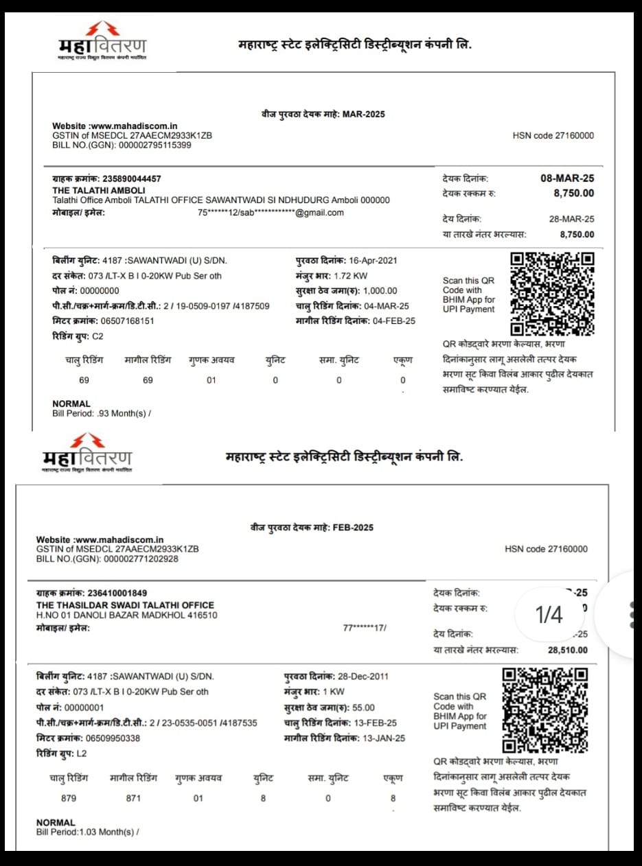 महसूल विभागाच्या आंबोली मंडळातील दोन तलाठी कार्यालयाचे वीज बिल थकीत..! ; महावितरणकडून वीज पुरवठा बंद केल्यास उद्भवणार विविध अडचणी.