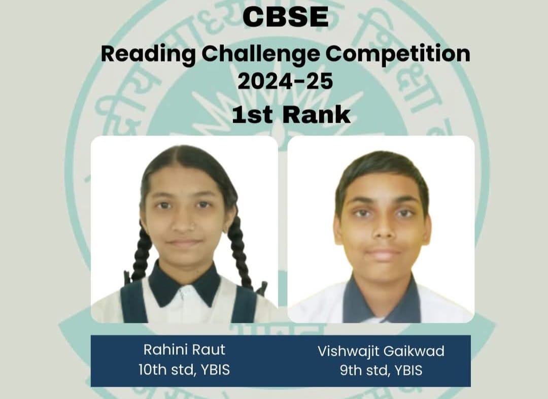 पुणे : केंद्रीय माध्यमिक शिक्षण मंडळ (सी.बी.एस.ई.) आयोजित ‘रिडींग चॅलेंज कॉम्पिटिशन’ मध्ये यशवंतराव भोसले इंटरनॅशनल स्कूलच्या विद्यार्थ्यांनी दैदीप्यमान यश संपादन केले. इयत्ता दहावीतील राहिनी रोशन राऊत आणि इयत्ता नववीतील विश्वजीत वैभव गायकवाड यांनी पुणे विभागात अव्वल स्थान पटकावले.