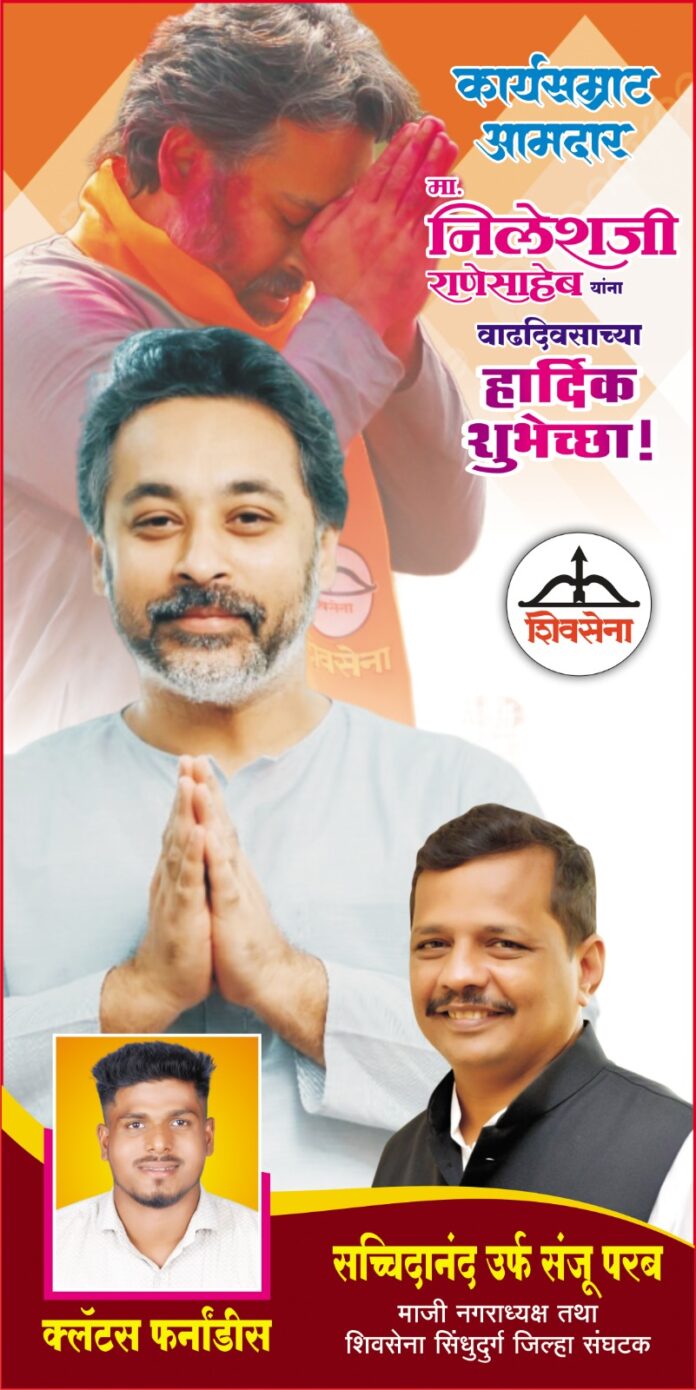 ⚡💫आमचे लाडके नेते तथा 🎉कुडाळ – मालवण विधानसभा मतदारसंघाचे 👑कार्यसम्राट आमदार माननीय श्री. निलेशजी राणे साहेब यांना वाढदिवसाच्या हार्दिक शुभेच्छा…!!💐🎂