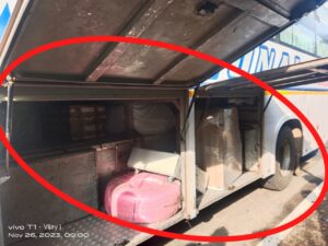 कुडाळ : मुंबई – गोवा महामार्गावरून येणाऱ्या व जाणाऱ्या खाजगी प्रवासी लक्झरी बस मधून मोठ्या प्रमाणात विना परवाना मालवाहतूक केली जात आहे. खाजगी बस मालक हे प्रवासी वाहतुकीचा परवाना असताना मोठ्या प्रमाणात मालवाहतूक करतात. यामध्ये मोठ्या प्रमाणात आंबा पेटी वाहतूक, हार्डवेअर चे सामान जनावरांचे मांस, औद्योगिक कंपन्याचा कच्चा माल , तयार झालेला माल इत्यादींचे समावेश असतो… याचा फटका सिंधुदुर्ग, रत्नागिरी येथील गुड्स परमिट असलेल्या स्थानिक टेम्पो, ट्रक, व्यवसायिक बसतो. स्लिपर कोच, प्रवाशी सिट, कॅरिअर(टप) आणि डीकीमधून अशी माल वाहतूक होते. आणि प्रवासी भाड्या पेक्षा अशा प्रकारचा विना बिलाचा आणि GST चुकविलेला माल याचे जास्त भाडे लक्झरी मालकाना मिळते. यामुळे अवाजवी प्रवाशी भाडे वाढ, प्रवाशांशी अरेरावी हे प्रकार होतात .यालाच आळा बसण्यासाठी यापूर्वी देखील मनसेचे वाहतूक सेना पदाधिकारी विजय जांभळे यांनी अनेक आंदोलने केली होती. परंतु किरकोळ कारवाई वगळता आरटीओ मार्फत ठोस अशी कोणतीच कारवाई अदयाप झालेली नाही.