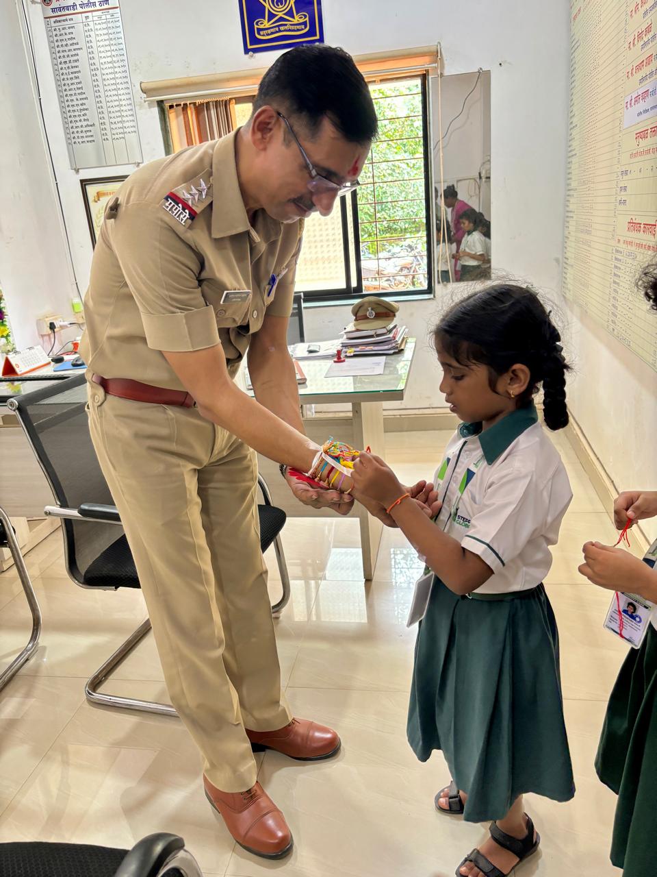 तेथे विद्यार्थ्यांनींनी पोलीस निरीक्षक अमोल चव्हाण व पोलीस हवालदार यांना राखी बांधली. त्याचप्रमाणे या विद्यार्थिनींनी रिक्षा स्टँडवरील रिक्षाचालकांना, पेट्रोल पंप वरील कर्मचारी व शालेय बस वाहन चालकांनाही राखी बांधली. कारण कळत नकळत हे सगळेच आपले रक्षणकर्ते आहेत. तसेच, ही बांधलेली प्रत्येक राखी प्रशालेतील विद्यार्थ्यांनी स्वहस्ताने तयार केली होती. याकरिता शालेय कला शिक्षिका सुषमा पालव व विनायकी जबडे यांचे विद्यार्थ्यांंना मार्गदर्शन लाभले. हा कार्यक्रम अतिशय आनंदात व उत्साहात पार पाडल्याबद्दल शाळेचे संचालक रुजुल पाटणकर व मुख्याध्यापक प्राची साळगावकर यांनी सर्व विद्यार्थी व शिक्षकांचे कौतुक केले.