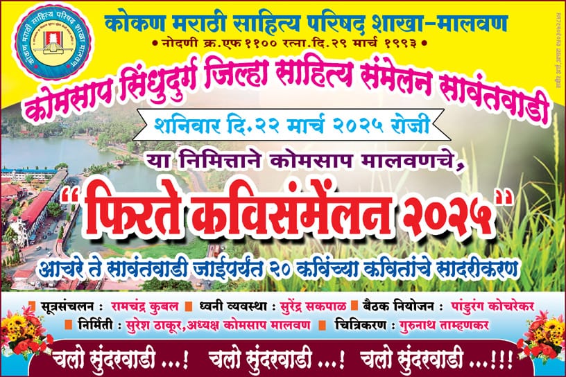 ”फिरते कवी संमेलन – २०२५’ अंतर्गत ‘आचरा ते सावंतवाडी’ या प्रवासादरम्यान बसमध्ये तब्बल वीस कवी आपल्या दर्जेदार कवितांचे सादरीकरण करणार आहेत. या फिरत्या कवी संमेलनाची निर्मिती कोकण मराठी साहित्य परिषद, मालवण शाखेचे अतिशय उपक्रमशील अध्यक्ष सुरेश ठाकूर यांची असून या संमेलनाचे निवेदक कवी रामचंद्र कुबल आहेत. ध्वनी व्यवस्था सुरेंद्र सकपाळ, बैठक नियोजन पांडुरंग कोचरेकर तर चित्रीकरण गुरुनाथ ताम्हणकर करणार आहेत.