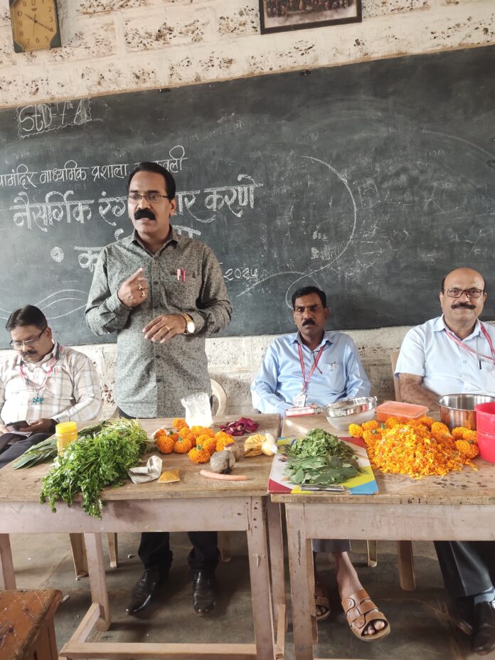 या रंगांचा रंगपंचीच्या दिवशी उधळण करून रंग पंचमी साजरी केली तर आरोग्यावर कोणतेच वाईट परिणाम होणार नाहीत. आज रंगपंचमीला जे रंग वापरून खेळले जाते ते रासायनिक रंग असतात त्याचा परिणाम शरिरावर होतो आणि विविध त्वच्या विकारावर परिणाम होऊन शरीराची हानी होते . म्हणून नैसर्गिक रंगांची निर्मिती या विषयाची कार्य शाळा आयोजित करून निरोगी समाज निर्मितीचे शिक्षण विद्यार्थ्यांना देण्यात आले यावेळी प्रशालेचे मुख्याध्यापक श्री पी जे कांबळे सरांनी निसर्ग निर्मित वनस्पतींचे आरोग्यदायी महत्व सांगून मार्गदर्शन केले पर्यवेक्षक श्री अच्युतराव वणवे सरांनी भारतीय सणांचे महत्व सांगून नैसर्गिक रंगाचे मानवी जीवनात स्थान महत्वपूर्ण कसे आहे यांचे मार्गदर्शन केले यावेळी जेष्ठ शिक्षक शेळके जे जे सरश्री सिंगनाथ सर सौ शिरसाठ मॅडम उपस्थित होते.