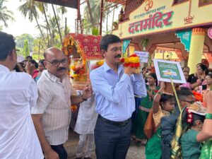 सिंधुदुर्ग जिल्ह्यात प्रथमच पिंगुळी ग्रामपंचायतच्या माध्यमातून ‘ग्रामपंचायत आपल्या दारी.!’ हा अभिनव उपक्रम एप्रिल 2025 ते 31मार्च 2026 या कालावधीत विविध उपक्रमांनी राबविण्यात येणार आहे. या मोहिमेचा शुभारंभ आज भव्य ग्रंथ दिंडी मिरवणुकीने झाला. या दिंडीचा शुभारंभ सरपंच अजय आकेरकर यांच्या हस्ते श्रीफळ वाढवून करण्यात आला.