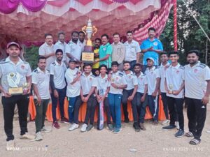 सावंतवाडी : शेवटच्या चेंडू पर्यंत अत्यंत रोमहर्षक ठरलेल्या अंतिम सामन्यात थरारक विजय प्राप्त करीत गुरुमाऊली संघाचा पराभव करित शांतादुर्गा मळगांव संघाने ‘भंडारी चषका ‘वर आपले नाव कोरले. तर तुल्यबळ लढत देणारा गुरुमाऊली संघ उपविजेत्या चषकाचा मानकरी ठरला. अंतिम सामन्यातील मुन्ना सावळची २८ धावांची नाबाद खेळी संघाला विजेता ठरविण्यात महत्वपूर्ण ठरली. तर संपूर्ण स्पर्धेत उत्कृष्ट गोलंदाजी करणाऱ्या हनुमंत पेडणेकर यांचे प्रयत्न अपुरे ठरले. विजेत्या संघाला शिवसेना जिल्हाप्रमुख संजू परब पुरस्कृत रोख १५ हजार व माजी सरपंच गणेशप्रसाद पेडणेकर प्रायोजित आकर्षक भव्य भंडारी चषक तर उपविजेत्या संघाला दया चौधरी (मनोरमा ट्रस्ट वालावल ) व युवा उद्योजक प्रसाद नाईक पुरस्कृत रोख १० हजार व कै. महादेव हळदणकर स्मृती प्रित्यर्थ पांडुरंग हळदणकर पुरस्कृत आकर्षक भव्य चषक देऊन मान्यवरांच्या सन्मानित करण्यात आले.