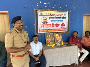 प्रारंभी डॉ. बाबासाहेब आंबेडकर यांच्या पुतळ्याला व प्रतिमाना मान्यवरांच्या हस्ते अभिवादन करण्यात आले. त्यानंतर आयोजित कार्यक्रमात श्री. पाटील यांनी मार्गदर्शन करताना सांगितले की, रक्तदानाचे महत्त्व अनन्यसाधारण आहे. आपल्या या एका रक्तदानाने एखाद्याला नवे जीवन मिळू शकते असे सांगून आपल्या रक्तात भीमरावही हवेत हे स्पष्ट करून समतेसाठी संविधान पूरक काम करणे आवश्यक असल्याचे त्याने स्पष्ट केले. भविष्यात वाचन, लेखन ,निबंध ,अशा विविध स्पर्धा आयोजकांनी आयोजित कराव्यात असे सांगून त्यासाठी आवश्यक असलेले सहकार्य आपण करण्याची त्यांनी ग्वाही दिली. तसेच अशा स्पर्धातून उज्वल भावी नागरिक निर्माण होतील, असा आशावादही त्यांनी व्यक्त केला.