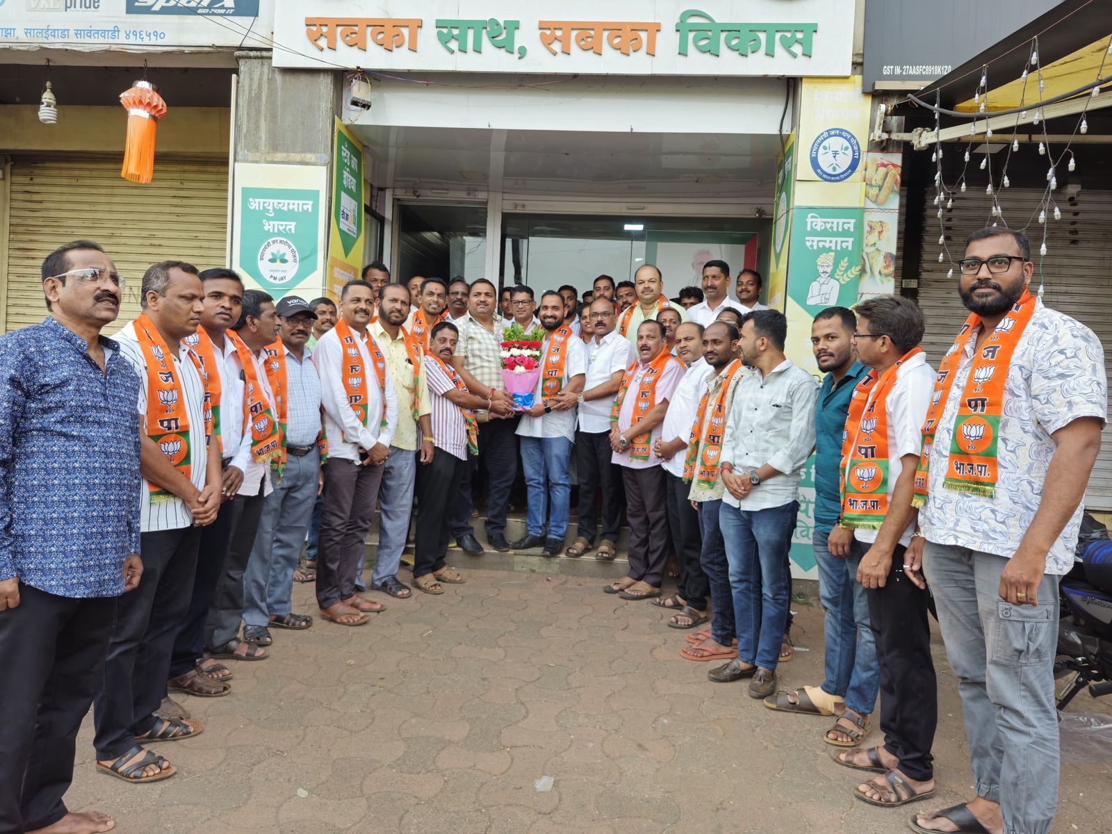 यावेळी जिल्हा उपाध्यक्ष प्रसन्ना देसाई, जिल्हा चिटणीस चंद्रकांत जाधव, माजी आंबोली मंडल अध्यक्ष रवींद्र मडगावकर, सावंतवाडी शहर मंडल अध्यक्ष सुधीर आडीवरेकर, बांदा मंडल अध्यक्ष स्वागत नाटेकर, महिला मंडल अध्यक्षा प्राजक्ता केळुस्कर,मंडल उपाध्यक्ष दिनेश सारंग, विरेंद्र धुरी, सुनील परब, वामन पालयेकर, सावित्री पालयेकर, दादा परब, संदीप हळदणकर, गुरु मठकर, अब्दुल साठी, सिद्धेश तेंडोलकर, योगेश गवळी, बाळकृष्ण सावंत, संदेश सावंत, प्रशांत राऊळ, आनंद तळवणेकर, रामचंद्र गावडे, आत्माराम चव्हाण, राजाराम धुरी, भगवान राणे, सुशांत गावडे, लक्ष्मण राऊळ, रामचंद्र सावंत, रुपेश कुडतरकर, रामचंद्र करमळकर, दीपक सावंत, चंद्रकांत म्हाडगुत, राकेश ठाकूर, प्रवीण सावंत, सुमित राऊळ, विशाल गुरव, मुकेश मोहिते, मंगलदीप पवार, रोशन ठाकूर यांसह अन्य पदाधिकारी व कार्यकर्ते उपस्थित होते.