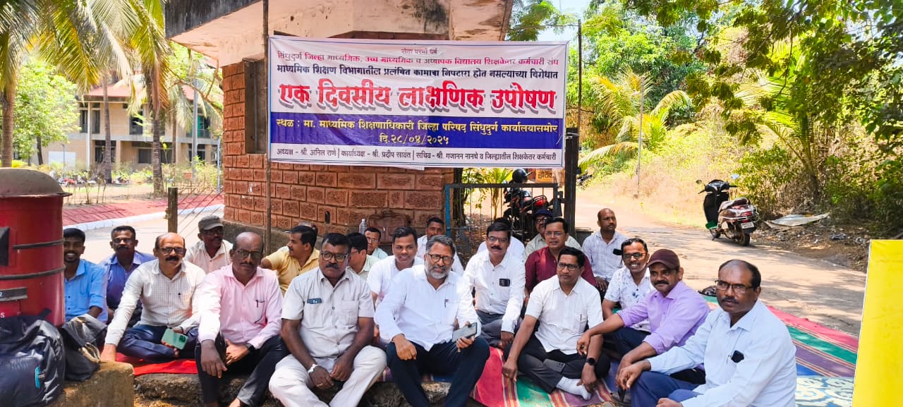 सिंधुदुर्ग जिल्हा हा महाराष्ट्रातील पहिला साक्षर जिल्हा असून या जिल्ह्यामध्ये शिक्षणाधिकारी माध्यमिक विभाग हे कायमच शिक्षक, शिक्षकेतर कर्मचारी यांच्या मागण्यांकडे डोळे झाक करून दुर्लक्ष करतात गेल्या दोन वर्षापासून भविष्य निर्वाह निधी फंडाच्या पावत्या काही शाळांना अद्याप मिळालेल्या नाहीत. पदोन्नतीचे प्रस्ताव प्रलंबित आहेत. पदोन्नतीसाठी किंवा मान्यतेसाठी उच्च न्यायालयाचे आदेश असून सुद्धा शिक्षणाधिकारी मान्यता देण्यास टाळाटाळ करीत आहेत. अशा विविध मागण्यांसंदर्भात शिक्षकेतर संघटनेने १८ मार्च रोजी आंदोलन पुकारलेले होते. त्यावेळी शिक्षणाधिकारी माध्यमिक यांनी शिक्षकेतर कर्मचारी संघटनेच्या पदाधिकारी यांना चर्चेस निमंत्रित करून प्रलंबित असलेले प्रश्न आठ दिवसात निकाली काढणार असे आश्वासन दिल्याने सदरचे आंदोलन स्थगित करण्यात आले होते. परंतु दिलेल्या आश्वासना पासून एक महिन्यापेक्षा अधिक कालावधी झाला आहे तरी शिक्षक, शिक्षकेतर कर्मचारी बांधवांच्या प्रलंबित प्रश्नांबाबत वारंवार लेखी पत्रव्यवहार तसेच प्रत्यक्ष भेटून सुद्धा प्रश्न निकाली काढल्या जात नसल्याने तसेच सहविचार सभा सभेमध्ये दिलेल्या आश्वासनाची पूर्तता होत नसल्याने आज अखेर शिक्षक, शिक्षकेतर कर्मचाऱ्यांचा कुठलाही प्रश्न सुटलेला नाही. या विरोधात आज शिक्षणाधिकारी माध्यमिक जिल्हा परिषद भवन सिंधुदुर्गनगरी येथे सकाळी साडेदहा वाजले पासून लाक्षणिक उपोषण सुरू आहे पुढील मागण्यांसंदर्भात शिक्षकेतर संघटनेतर्फे आयोजित करण्यात आले आहे. यामध्ये मान उच्च न्यायालय मुंबई न्यायालयाच्या आदेशाची अंमलबजावणी करणे व पदोन्नतीस मान्यता देणे याबाबत कोकण विभागाचे शिक्षक आमदार ज्ञानेश्वर म्हात्रे तसेच कोकण पदवीधर मतदारसंघाचे आमदार निरंजन डावखरे यांनी सुद्धा वारंवार आमच्या मागण्यांसंदर्भात शिक्षणाधिकारी यांना सुचित केलेले होते परंतु आमदार महोदय यांचे आदेश किंवा सूचना सुद्धा शिक्षणाधिकारी पाळत नाहीत तसेच शिक्षण उपसंचालक कोल्हापूर यांनी सुद्धा सूचना देऊनही हेतू पुरस्कर सिंधुदुर्ग जिल्ह्याचे शिक्षणाधिकारी सदर मागण्यांबाबत टाळाटाळ व डोळेझाक करीत आहेत. संवर्ग बदलाने शिपाई प्रवर्गातून कनिष्ठ लिपिकपदी पदोन्नती, नवीन शिक्षकेतर पदभरती मान्यता देणे, जानेवारी २०२४ पासून शिक्षकेतरांना २४ वर्षानंतर मिळणारी दुसरी कालबद्ध पदोन्नतीचे प्रस्ताव धूळखात पडलेले आहेत त्यास मंजुरी देणे सन २०१८ – १९ पासून ची प्रलंबित पुरवणी फरक बिल, न्यायालयीन फरक बिल, वैद्यकीय बिल मंजूर करणे, दोन वर्षापासून प्रायव्हेट फंड पावत्या काही शाळांना मिळालेल्या नाहीत त्या तात्काळ मिळाव्यात. १५ मार्च २०२४ च