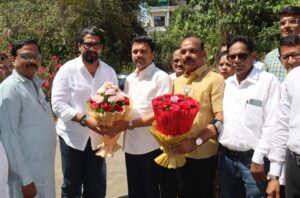 सिंधुदुर्गनगरी : सिंधुदुर्ग जिल्हा मध्यवर्ती सहकारी बँकेच्या प्रधान बँकेच्या प्रधान कार्यालयास महाराष्ट्र राज्याचे सार्वजनिक बांधकाम मंत्री नाम. श्रीमंत छत्रपती शिवेंद्रसिंहराजे भोसले यांनी भेट दिली. यावेळी जिल्हा बँकेचे अध्यक्ष मनिष दळवी यांनी त्यांना शाल, श्रीफळ, पुष्पगुच्छ तसेच गोमय गणेशमुर्ती देऊन मंत्री महोदयांचे स्वागत केले.
