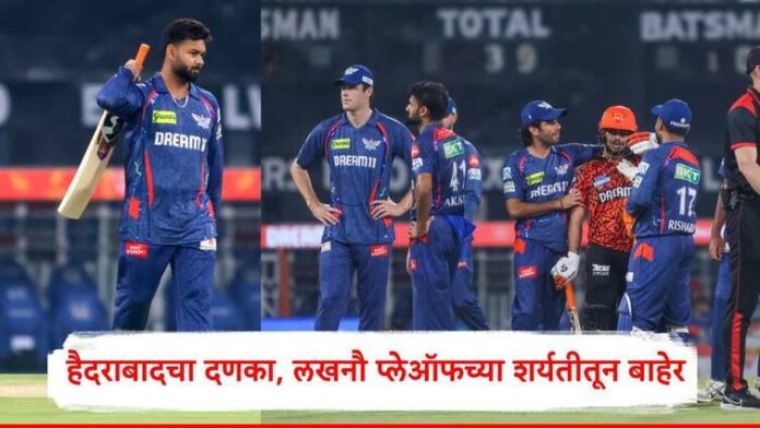 लखनौला यंदाच्या आयपीएलमधील सातवा पराभव स्वीकारावा लागला. यामुळं लखनौ सुपर जायंटस प्लेऑफ च्या शर्यतीतून बाहेर पडलं आहे. आता प्लेऑफ साठी मुंबई आणि दिल्लीत स्पर्धा असेल. प्लेऑफमध्ये यापूर्वी गुजरात टायटन्स, पंजाब किंग्ज आणि रॉयल चॅलेंजर्स बंगळुरु दाखल झाले आहेत.