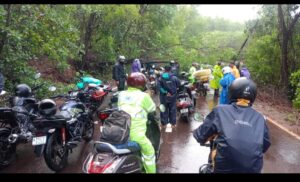 दरम्यान आज गुरुवारी पहाटे मळेवाड शाळा नं.१ च्या जवळच वळणार असलेले भले मोठे झाड रस्त्यावर आडवे झाले.त्यामुळे वीज वितरणचे पोल जमीनदोस्त होऊन विद्युत वाहिन्या तुटल्या.अशातच हे झाड रस्त्यावर पडल्यामुळे दोन्ही बाजूची वाहतूक ठप्प झाली होती. कामानिमित्त गोव्याला जाणाऱ्या बऱ्याच जणांना याचा फटका बसला.मात्र मळेवाड येथील युवक वैभव नाईक यांनी याबाबतची माहिती ग्रामपंचायत सदस्य अमोल नाईक यांना देताच त्यांनी लागलीच आपल्या सहकारी बापू मुळीक, गजानन परब,रवींद्र तळववणेकर, संतोष गावडे व ग्रामस्थांच्या सहकार्याने हे झाड तोडून बाजूला केले व दोन्ही बाजूने बंद असलेली वाहतूक सुरळीत केली.यावेळी येथील वाहन चालकांनी समाधान व्यक्त केले व त्यांचे आभार मानले.
