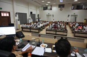 जिल्ह्यात निर्माण झालेल्या परिस्थितीचा आढावा व जनजीवन सुरळीत होण्यासाठी करावयाच्या उपाय योजनांसाठी पालकमंत्री नितेश राणे यांच्या अध्यक्षतेखाली जिल्हा आपत्ती व्यवस्थापन प्राधिकरणाची बैठक संपन्न झाली. या बैठकीला जिल्हाधिकारी अनिल पाटील, मुख्य कार्यकारी अधिकारी डॉ. माणिक दिवे, प्रभारी पोलिस अधीक्षक कृषिकेश रावले, अपर जिल्हाधिकारी शुभांगी साठे, प्रभारी निवासी उपजिल्हाधिकारी नितीश राऊत, जिल्हा बँकेचे अध्यक्ष मनिश दळवी तसेच विविध विभागांचे अधिकारी उपस्थित होते.