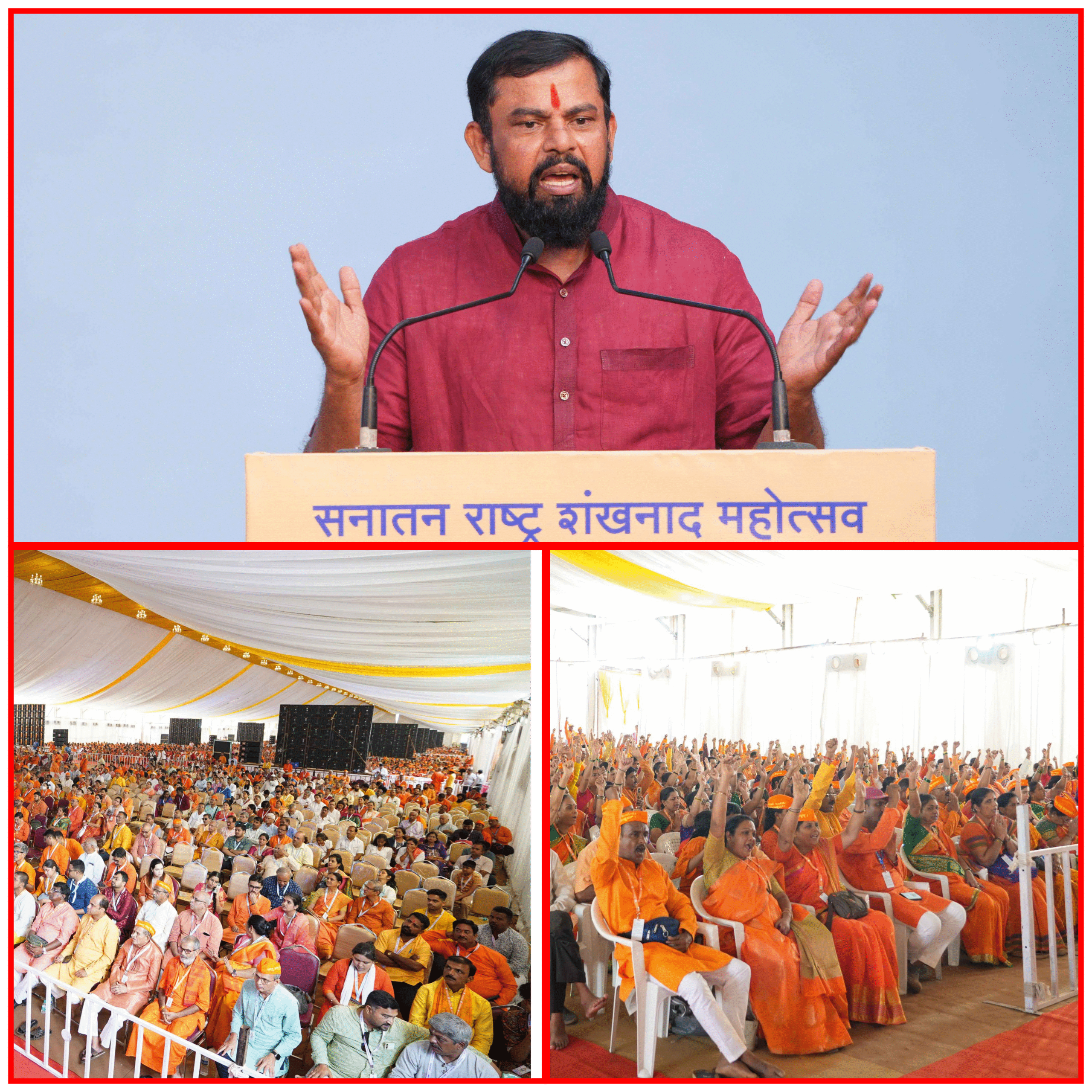 गोव्याच्या पवित्र भूमीत ‘सच्चिदानंद परब्रह्म डॉ. आठवलेनगरी’ येथे सुरू असलेल्या ‘सनातन राष्ट्र शंखनाद महोत्सवा’चा भव्य आणि भक्तिमय समारोप झाला. भारतासह जगभरातील २३ देशांतून आलेले सुमारे ३० हजार हिंदू धर्मप्रेमी आणि साधक यांनी महोत्सवात उत्स्फूर्त सहभाग नोंदवून हिंदु एकात्मतेचे दर्शन घडवले. हा महोत्सव म्हणजे हिंदु राष्ट्र स्थापनेच्या दिशेने पडलेले एक महत्त्वाचे पाऊल होते.