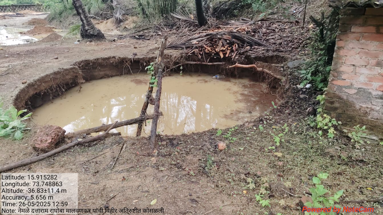 नेमळे येथील शेतकरी दत्ताराम मालवणकर यांची शेतविहीर अतिवृष्टीमुळे कोसळली.