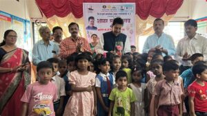 दरम्यान यावेळी आमदार दीपक केसरकर व संजू परब यांच्या हस्ते विद्यार्थ्यांना प्रातिनिधिक स्वरूपात गणवेश व पुस्तकांचे वाटपही करण्यात आले.