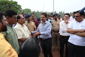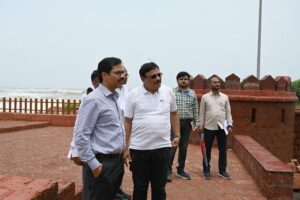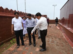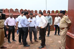 सिंधुदुर्गनगरी : सार्वजनिक बांधकाम विभागाचे मुख्य अभियंता शरद राजभोज यांनी मालवण येथील राजकोट किल्यावर नव्याने उभारण्यात आलेल्या छत्रपती शिवाजी महाराजांच्या पुतळ्याची आणि परीसराची पाहणी केली. 14 व 15 जून 2025 रोजी सिंधुदुर्ग जिल्हा व मालवण तालुक्यात झालेल्या मुसळधार पावसामुळे चबुतऱ्याच्या बाजूने भरलेला मातीचा भराव (Backfilling) किंचित प्रमाणात खचला आहे. छत्रपती शिवाजी महाराजांचा पुतळा व चबुतरा पूर्णपणे मजबूत, सुरक्षित आणि सुस्थितीत आहे. चबुतऱ्याच्या मुख्य रचनेवर किंवा पुतळ्यावर कोणताही परिणाम झालेला नाही. असे मुख्य अभियंता शरद राजभोज यांनी यावेळी सांगितले.
