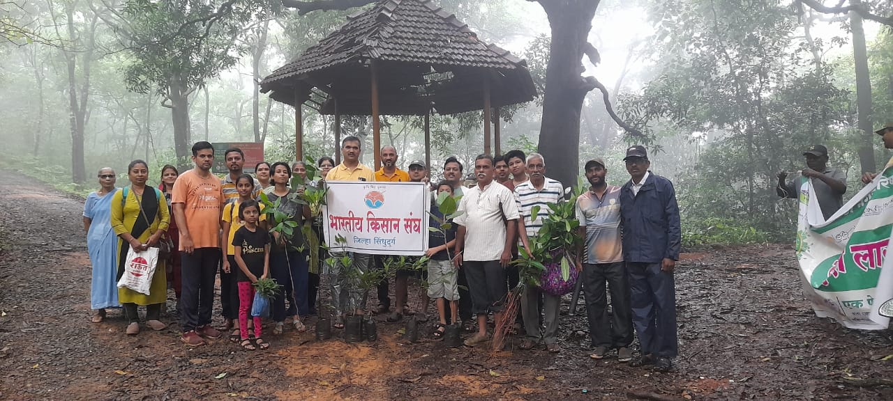 भारतीय किसान संघ व अभिनव फौंडेशन, सावंतवाडीच्यावतीने नरेंद्र डोंगर सावंतवाडी येथे बीजारोपण व वृक्षारोपण अभियान राबविले. यावेळी उपस्थित नागरिकांनी आंबा, फणस, कोकम, चिंच अशा फळझाडांच्या बिया जंगलात रोवल्या. सावंतवाडी नगरपालिका यांनी माझी वसुंधरा अभियानातून उपलब्ध करून दिलेली तिरफळ,आवळा, वड , चिंच अशी झाडे लावली. तसेच सिडबॉल विखुरण्यात आले. यावेळी वनविभागाचे आरएफओ सौरभ पाटील उपस्थित होते.या अभियानात राष्ट्र सेविका समिती, विश्व हिंदु परिषदेच्या महिला तसेच ज्येष्ठ नागरिक, लहान मुले सहभागी झाली.दरवर्षी असा कार्यक्रम करायचा संकल्प घेऊन कार्यक्रम समाप्त झाला.