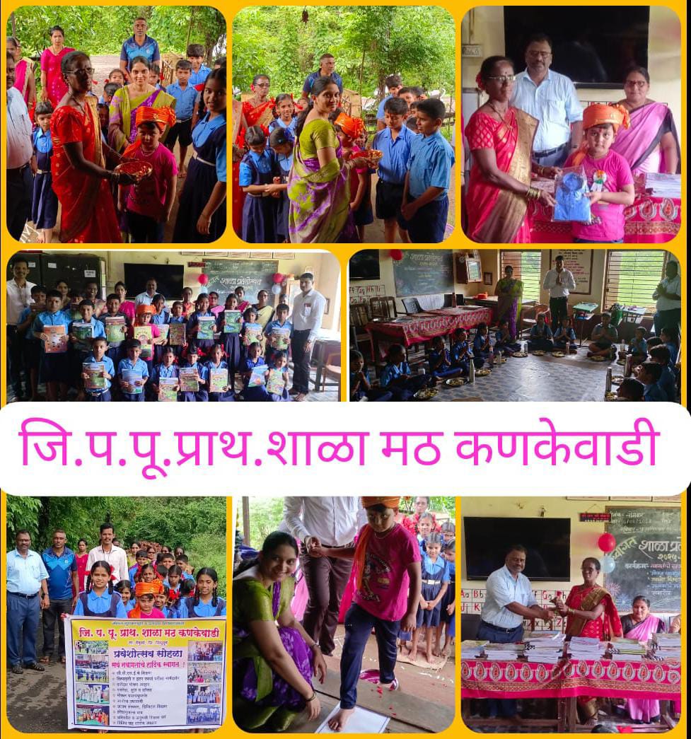 वेंगुर्ला : आज दिनांक 16 जून 2025 रोजी शाळा मठ कणकेवाडी मध्ये शाळेचा पहिला दिवस शाळा प्रवेशोत्सवाने उत्साहात संपन्न झाला. सर्वप्रथम शालेय परिसरात प्रभातफेरी काढण्यात आली त्यानंतर नवागतांचे औक्षण करून गुलाबपुष्प देऊन स्वागत करण्यात आले. सर्व विद्यार्थ्यांना मान्यवरांच्या हस्ते पाठ्यपुस्तक वितरण करण्यात आली सर्व विद्यार्थ्यांना खाऊ वाटप करण्यात आले.