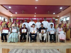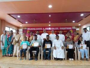 सावंतवाडी : येथील मिलाग्रीस हायस्कूल या प्रशालेत इयत्ता दहावी व बारावीच्या गुणवंत विद्यार्थ्यांचा सत्कार सोहळा संपन्न झाला.कार्यक्रमाच्या सुरुवातीला प्रार्थना गीताने परमेश्वराची आराधना करण्यात आली. यानंतर प्रमुख मान्यवरांच्या हस्ते दीप प्रज्वलित करण्यात आला. यानंतर उपस्थित विद्यार्थी व पालक यांना शुभ संदेश देण्यासाठी दहावीच्या विद्यार्थ्यांनी नृत्याविष्कार करीत सर्वांचे मनोरंजन केले.
