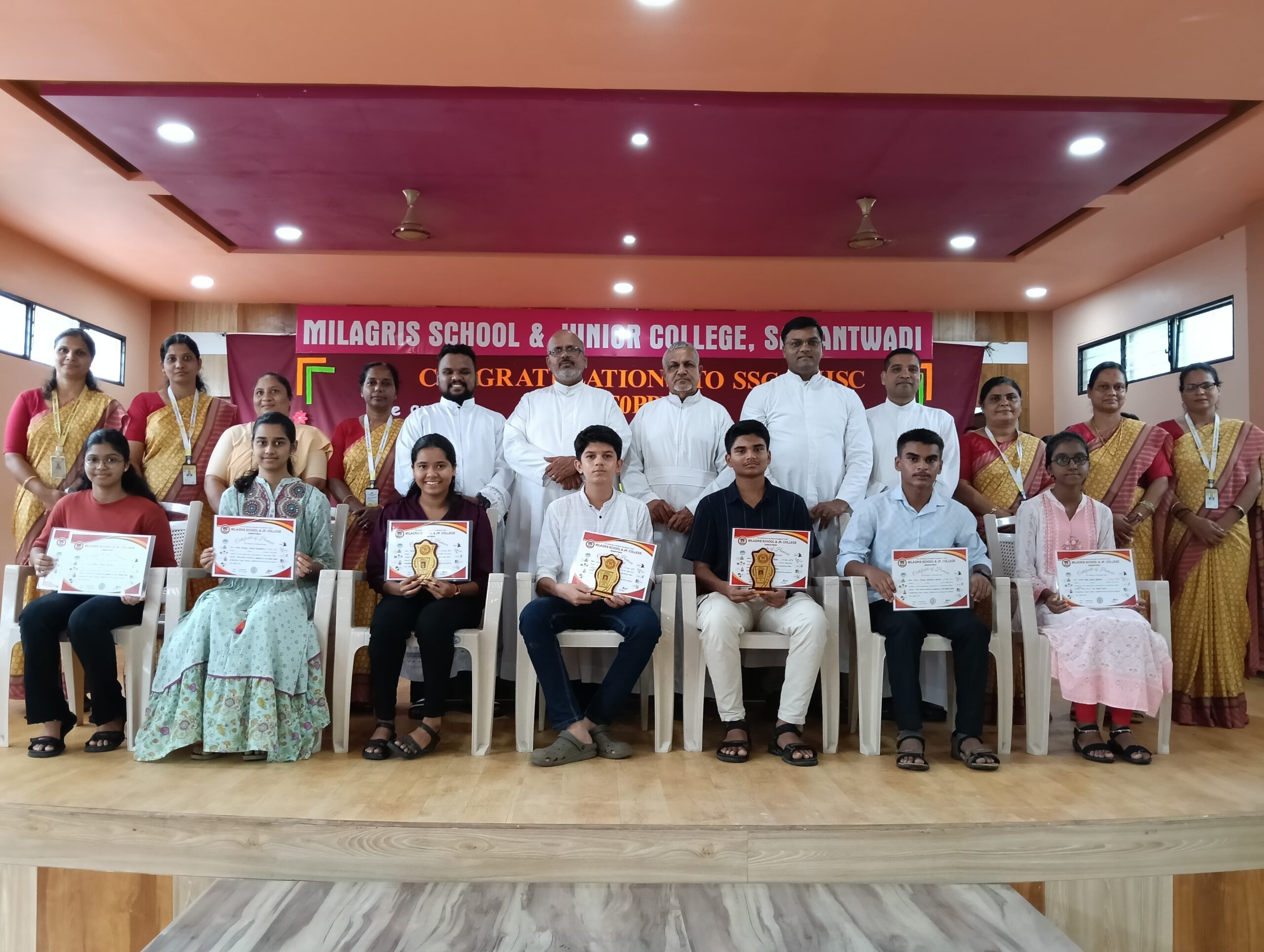 यावेळी उपस्थित सिंधुदुर्ग डायोसेशन एज्युकेशन ट्रस्टचे अध्यक्ष व विकार जर्नल रे.फादर अँड्रय़ू डिमेलो, तसेच ज्युडिशियल विकार ऑफ डायोसिस ऑफ सिंधुदुर्ग चे रे.फादर मिल्टन मोंतेरो सेंट जोसेफ चर्च भेडशी चे असिस्टंट पॅरिस्ट प्रिस्ट रे.फादर रिचर्ड फर्नांडिस प्रशालेचे मॅनेजर रे.फादर मिलेट डिसोजा यांचे स्वागत मिलाग्रीस हायस्कूल चे मुख्याध्यापक रे.फादर रिचर्ड सालदाना यांच्या हस्ते पुष्पगुच्छ देऊन करण्यात आले. यावेळी इयत्ता दहावी व बारावीच्या गुणवंत विद्यार्थी व पालकांना सन्मानचिन्ह, प्रमाणपत्र व पुष्प देऊन गौरविण्यात मान्यवरांच्या हस्ते गौरविण्यात आले. यावेळी विद्यार्थ्यांच्या वतीने आर्या रावजी राणे हिने तर पालकांच्या वतीने सैनिक स्कूल आंबोलीचे उपमुख्याध्यापक व विज्ञान मंडळ सावंतवाडीचे अध्यक्ष ऋषिकेश गावडे यांनी केले.