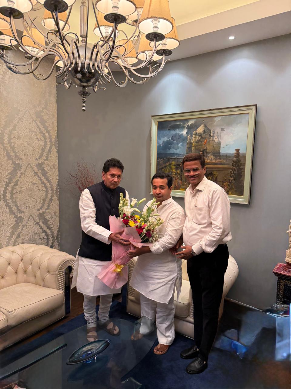 मंत्री नितेश राणे यांचा उद्या सोमवार २३ जून रोजी वाढदिवस असून ते सोमवारी जिल्हा दौऱ्यावर आहेत. कणकवली येथील निवासस्थानी ते शुभेच्छा स्वीकारणार आहेत. या पार्श्वभूमीवर वाढदिवसाच्या पूर्वसंध्येला त्यांच्या मुंबई जूहू येथील अधिश बंगल्यावर भेट घेत आमदार दीपक केसरकर यांनी त्यांना वाढदिवसाच्या शुभेच्छा दिल्या.