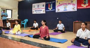 यानंतर योग प्रशिक्षक प्रदीप्ती कोटकर व रिया सावंत यांच्या मार्गदर्शनाखाली विविध योगासने, प्राणायाम आणि ध्यान प्रकार शिकविण्यात आले. यावेळी विद्यार्थी, प्राध्यापक आणि कर्मचाऱ्यांनी उत्स्फूर्तपणे सहभाग घेतला.
