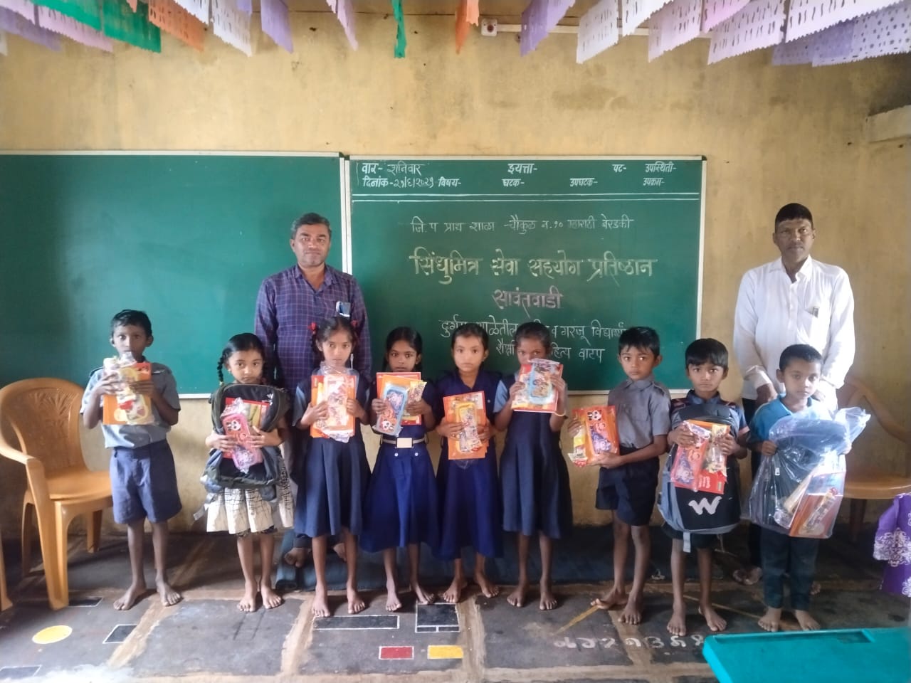 सिंधुमित्र सेवा सहयोग प्रतिष्ठानने चौकुळ गावात दुर्गमस्थानी असलेल्या म्हाराटी बेरडकी आणि चुरणीची मूस या दोन्ही शाळेतील गरीब व गरजू विद्यार्थ्यांना लागणाऱ्या शैक्षणिक साहित्याची गरज ओळखून शैक्षणिक साहित्य दिल्याबद्दल चौकुळचे सामाजिक कार्यकर्ते मनोहर उर्फ बाबू गावडे, म्हाराटी बेरडकी प्राथमिक शाळेचे मुख्याध्यापक काशिनाथ हसबे व उपशिक्षक विद्याधर पाटील, चुरणीची मूस प्राथमिक शाळेचे शिक्षक संजय वेतुर्लेकर यांनी