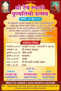 सावंतवाडी :  श्री एकमुखी दत्त मंदिर व वासुदेवानंद सरस्वती मंदिर सबनीसवाडा, सावंतवाडी येथे आषाढ शुध्द प्रतिपदा गुरुवार दिनांक २६ जून २०२५ रोजी सालाबादप्रमाणे श्री टेंबे स्वामी पुण्यतिथी साजरी करण्यात येणार आहे.