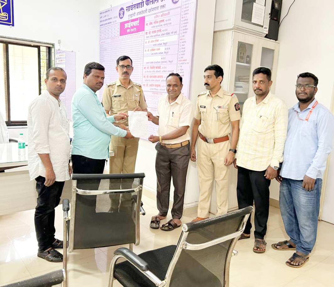 व्हॉईस ऑफ मीडिया संघटना, सिंधुदुर्ग जिल्हा शाखेच्या पदाधिकाऱ्यांनी आज सावंतवाडी पोलीस निरीक्षक श्री. चव्हाण यांची सदिच्छा भेट घेऊन व्हॉईस ऑफ मीडिया संघटनेच्या वतीने आजपर्यंत राबविण्यात आलेल्या उपक्रमांची तसेच टीम सिंधुदुर्गच्या वतीने आगामी काळात राबविण्यात येणाऱ्या विविध उपक्रमाबाबत माहिती दिली व सकारात्मक चर्चा केली. तसेच आगामी काळात विद्यार्थ्यांच्या गुणगौरव सोहळ्याचे निमंत्रणही त्यांना दिले. यावेळी पोलीस उपनिरीक्षक जयेश खंदरकर, तसेच संघटनेचे जिल्हाध्यक्ष प्रा. रूपेश पाटील, कार्याध्यक्ष भूषण सावंत, उपाध्यक्ष मिलिंद धुरी, खजिनदार आनंद कांडरकर, सदस्य साबाजी परब यांसह अन्य उपस्थित होते.
