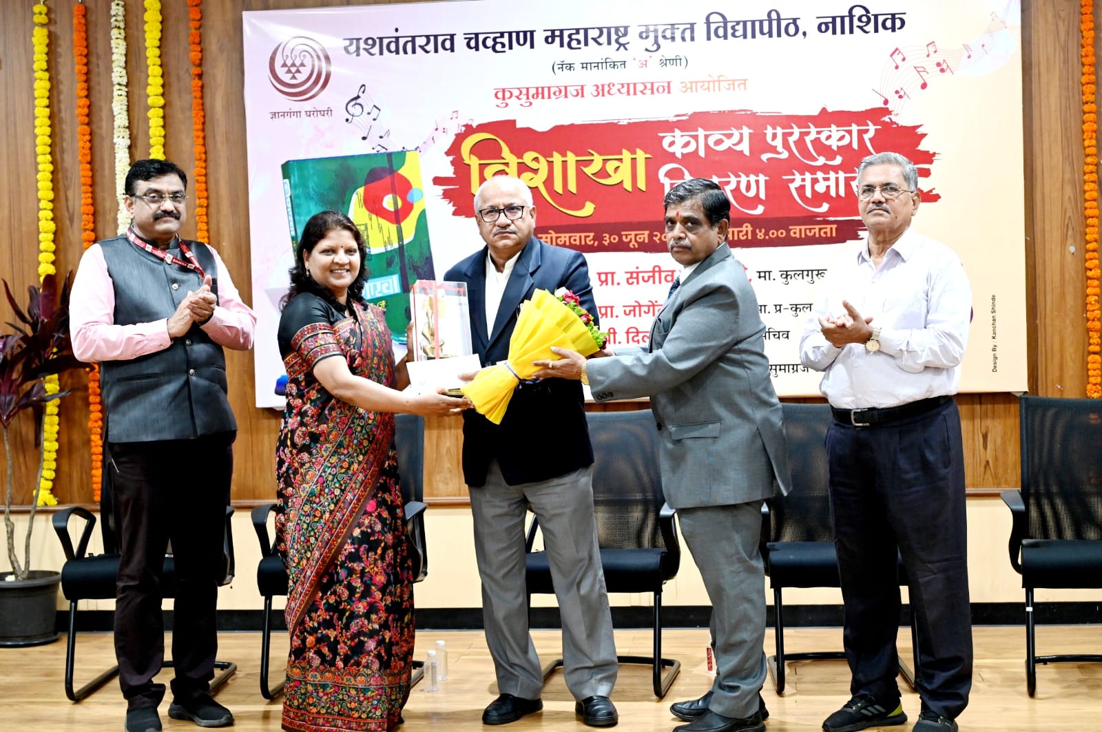सन 2018 ते सन 2024 या सात वर्षांतील एकूण 22 साहित्यिकांना प्रथम, द्वितीय आणि तृतीय पुरस्कारांचे वितरण मान्यवरांच्या हस्ते करण्यात आले. यावेळी प्रमुख अतिथी प्र. कुलगुरु प्रा. जोगेंद्रसिंह बिसेन, कुलसचिव श्री. दिलीप भरड, कुसुमाग्रज अध्यासन प्रमुख डॉ. दिलीप धोंडगे उपस्थित होते. सरिता पवार यांच्या राखायला हवी निजखूण या काव्यसंग्रहाला सन 2022 सालसाठी चा प्रथम पुरस्कार प्रदान करण्यात आला. 21 हजार रुपये, स्मृतिचिन्ह, प्रमाणपत्र, पुष्पगुच्छ असे पुरस्काराचे स्वरूप आहे. थोर साहित्यिक दिवंगत विष्णू वामन शिरवाडकर उर्फ कुसुमाग्रज यांच्या विशाखा या काव्यसंग्रहाला भारत सरकारचा ज्ञानपीठ पुरस्कार प्राप्त झाला होता. नाशिकचे सुपुत्र , ज्ञानपीठ पुरस्कारप्राप्त कुसुमाग्रज यांच्या स्मृतिप्रीत्यर्थ यशवंतराव चव्हाण मुक्त विद्यापीठ नाशिकच्या वतीने दरवर्षी महाराष्ट्र राज्यातील साहित्यिकांच्या प्रथम काव्यसंग्रहास त्यावर्षीचा विशाखा पुरस्कार दिला जातो. पुरस्कार निवडीसाठी अत्यंत पारदर्शकपणे त्रिस्तरीय निवड पद्धतीने निवड केली जाते.सरिता पवार यांचे कथा काव्य ललित लेख प्रसिद्ध असून राखायला हवी निजखूण या काव्यसंग्रहाला मध्यप्रदेश राज्यातील वसंत राशीनकर काव्यासाधना पुरस्कार, काव्यरासिक मंडळ डोंबिवली चा राज्यस्तरीय उत्कृष्ट काव्यसंग्रह,एटीएम राज्यस्तरीय साहित्य गौरव पुरस्कार, कोल्हापूर येथील राज्यस्तरीय कदंब पुरस्कार, राज्यस्तरीय सारांश पुरस्कार मिरज,राज्यस्तरीय काव्यगौरव पुरस्कार बुलढाणा, राज्यस्तरीय आई पुरस्कार राजापूर, सावित्रीबाई फुले पुरस्कार वेंगुर्ले, कोमसापचा नमिता किर लक्षवेधी पुरस्कार आदी महत्वाचे पुरस्कार प्राप्त झाले आहेत. विशाखा पुरस्कार प्रदान झाल्याबद्दल सरिता पवार यांचे सर्व स्तरातून अभिनंदन होत आहे.
