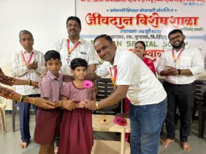 दरम्यान यावेळी पोलीस निरीक्षक अमोल चव्हाण यांच्या हस्ते विशेष बालकांना शैक्षणिक साहित्य वितरित करण्यात आले तसेच मल्लसम्राट प्रतिष्ठानचे सदस्य नागेश सूर्यवंशी व कामाक्षी महालकर यांचा वाढदिवस विशेष बालकांसोबत केक कापून साजरा करण्यात आला.