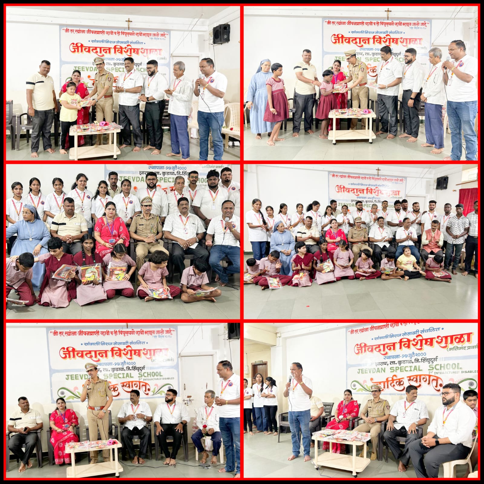 सावंतवाडी : मल्लसम्राट प्रतिष्ठान सिंधुदुर्ग या संस्थेद्वारा अनेक विधायक उपक्रम राबविले जातात. समाजातील तळागाळापर्यंत पोहोचण्याचे काम मल्लसम्राट करीत आहे. आज खऱ्या अर्थाने युवकांना चांगली दिशा यातून मिळत असून प्रतिष्ठांच्या माध्यमातून सतत भरीव सामाजिक कार्यदेखील घडत आहे घडत आहे. मल्लसम्राटच्या या कार्याचा इतरांनी आदर्श घ्यावा, असे गौरवोद्गार सावंतवाडी पोलीस स्टेशनचे पोलीस निरीक्षक अमोल चव्हाण यांनी काढले. मल्लसम्राट प्रतिष्ठान सिंधुदुर्गच्या वतीने जीवदान विशेष शाळा झाराप (मतिमंद प्रवर्ग) येथील विद्यार्थ्यांना शालेय साहित्य व खाऊचे वाटप करण्यात आले. यावेळी प्रमुख अतिथी म्हणून पोलीस निरीक्षक श्री. चव्हाण बोलत होते. कार्यक्रमाच्या अध्यक्षस्थानी प्रतिष्ठानचे अध्यक्ष जावेद शेख होते. यावेळी व्यासपीठावर आंतरराष्ट्रीय मानवाधिकार वेल्फेअर असोसिएशनचे अध्यक्ष मिलिंद धुरी, महिला जिल्हाध्यक्षा सौ. मानसी परब, मल्लसम्राटचे सचिव पै. ललित हरमलकर, उपाध्यक्ष प्रा. रुपेश पाटील, सहसेक्रेटरी फिजा मकानदार, निरवडे ग्रामपंचायत सदस्य जयराम जाधव, पीआरओ साबाजी परब, तसेच ह्युमन राईट वेल्फेअर असोसिएशनचे उपाध्यक्ष आनंद कांडरकर, ज्येष्ठ सामाजिक कार्यकर्ते सुनील नेवगी तसेच शाळेच्या मुख्याध्यापिका सिस्टर रोजम्मा जोब आदि उपस्थित होते.