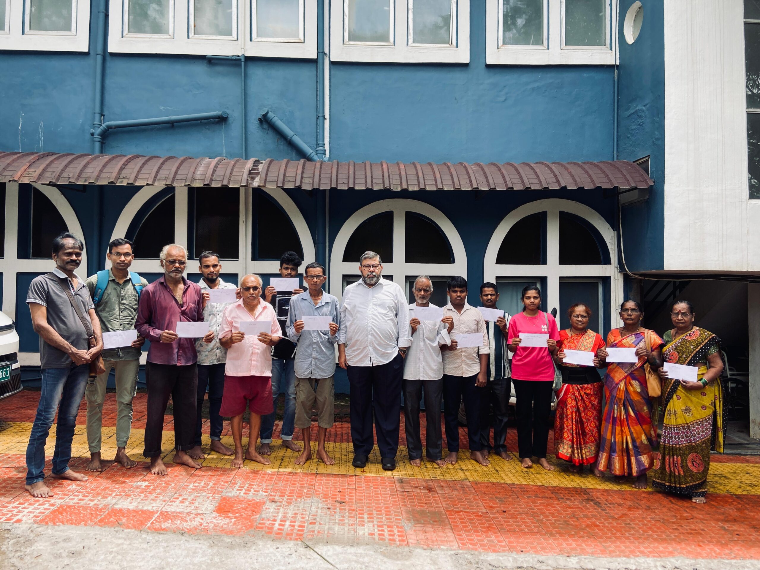 क्षयरोगाने पिडित शेर्ले येथील प्रसाद राऊत,वेतोरे येथील बॅ नाथ पै नर्सिंग कॉलेज मधील ऋतुजा गावडे,देवसू येथील पोटाच्या गंभीर आजाराने पिडीत प्रियांका गुरव,पेंडूर येथील विद्यार्थी अविनाश गावडे, विलवडे येथील डोळ्यांच्या विकाराने ग्रस्त विनायक सावंत, इन्सुली येथील कर्करोग ग्रस्त कृष्णा कुडव,पेंडुर येथील नर्सिंग शिक्षण घेणारी पुजा राऊत, सावंतवाडी येथील संधीवाताने ग्रस्त ललिता निगुडकर,पेंडुर येथील मधुमेह आजाराने पिडीत अनिल गावडे,निगुडे येथील डोळ्यांच्या आजाराने पिडीत सुहासिनी निगुडकर,ओटवणे येथील रक्तदाबाने ग्रस्त रुक्मिणी गावकर, ओटवणे येथील दृष्टीहीन झालेले राजेश मुळीक, सावंतवाडी येथील होतकरू विद्यार्थी पांडुरंग नमशी अशा तेरा व्यक्तींना हे धनादेश प्रदान करण्यात आले आहेत.
