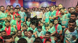 सावंतवाडी : भाजप नेते संदीप गावडे आयोजित भारतीय जनता पार्टी सुंदरवाडी दहीहंडी उत्सव २०२४ स्पर्धेची रंगत उत्तरोत्तर रात्री अधिकच वाढत गेली. महापुरुष गोविंदा पथक नीमजगा बांदा गोविंदा पथकाने थरारक सात थरांची सलामी दिल्यानंतर हनुमान प्रसन्न राजापूर संघाने त्यांच्याही पेक्षा कमी वेळेत सात थरांची सलामी देत हा संघ सुंदरवाडी दहीहंडी महोत्सवाच्या या स्पर्धेचा मानकरी ठरला. या संघाला संदीप गावडे यांच्या माध्यमातून १ लाख ११ हजार १११ रुपयांचे रोख पारितोषिक व भव्य चषक देऊन सन्मानित करण्यात आले.