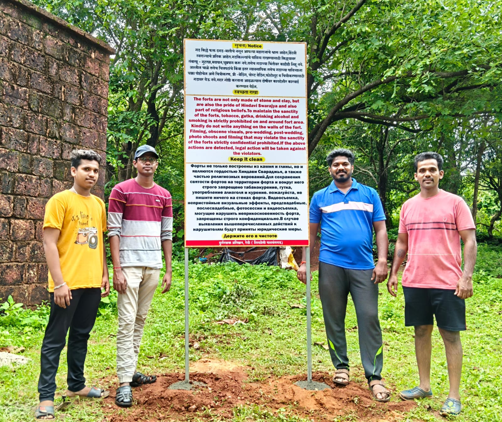 त्या अश्या की, गड किल्ले फक्त दगड मातीचे नसून आपल्या महाराजांचे श्वास आहेत, हिंदवी स्वराज्याचे प्रतीक आहेत. गड किल्ल्याचे पावित्र्य राखण्यासाठी किल्ल्यावर तंबाखू-गुटखा,मद्यपान,धूम्रपान करू नये.तसेच गडाच्या भिंतीवर काहीही लिहू नये.अश्लील चाळे तसेच चित्रपटांचे किंवा इतर व्यावसायिक तसेच गडाच्या पावित्र्याला धक्का पोहोचेल असे चित्रीकरण,प्री वेडिंग,पोस्ट वेडिंग,फोटोशूट व छायाचित्रीकरणासाठी गडावर येऊ नये. सदर गोष्टी करताना आढळल्यास दोषींवर कायदेशीर कारवाई करण्यात येईल. ह्या सूचना वाचून व त्यांचे पालन करुन गडावर होणारे गैरप्रकार यांना वेळीच आळा घालता यावा व वास्तूचे सौंदर्य अबाधित राहावे हाच ह्या उपक्रमाचा हेतू आहे.