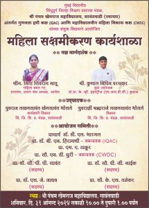 अंतर्गत गुणवत्ता हमी कक्ष व महाविद्यालयीन महिला विकास कक्ष यांच्या संयुक्त विद्यमाने एकदिवसीय महिला सबलीकरण कार्यशाळेचे आयोजन करण्यात आले आहे. दिनांक 31 ऑगस्ट 2024 रोजी सकाळी 10 वाजता होणारया कार्यक्रमाचे उद्घाटन सिंधुदुर्ग जिल्हा शिक्षण प्रसारक मंडळाचे कार्यकारी विश्वस्त युवराज लखमसावंत भोंसले, युवराज्ञी सौ. श्रद्धाराजे भोंसले यांच्या हस्ते होणार आहे.