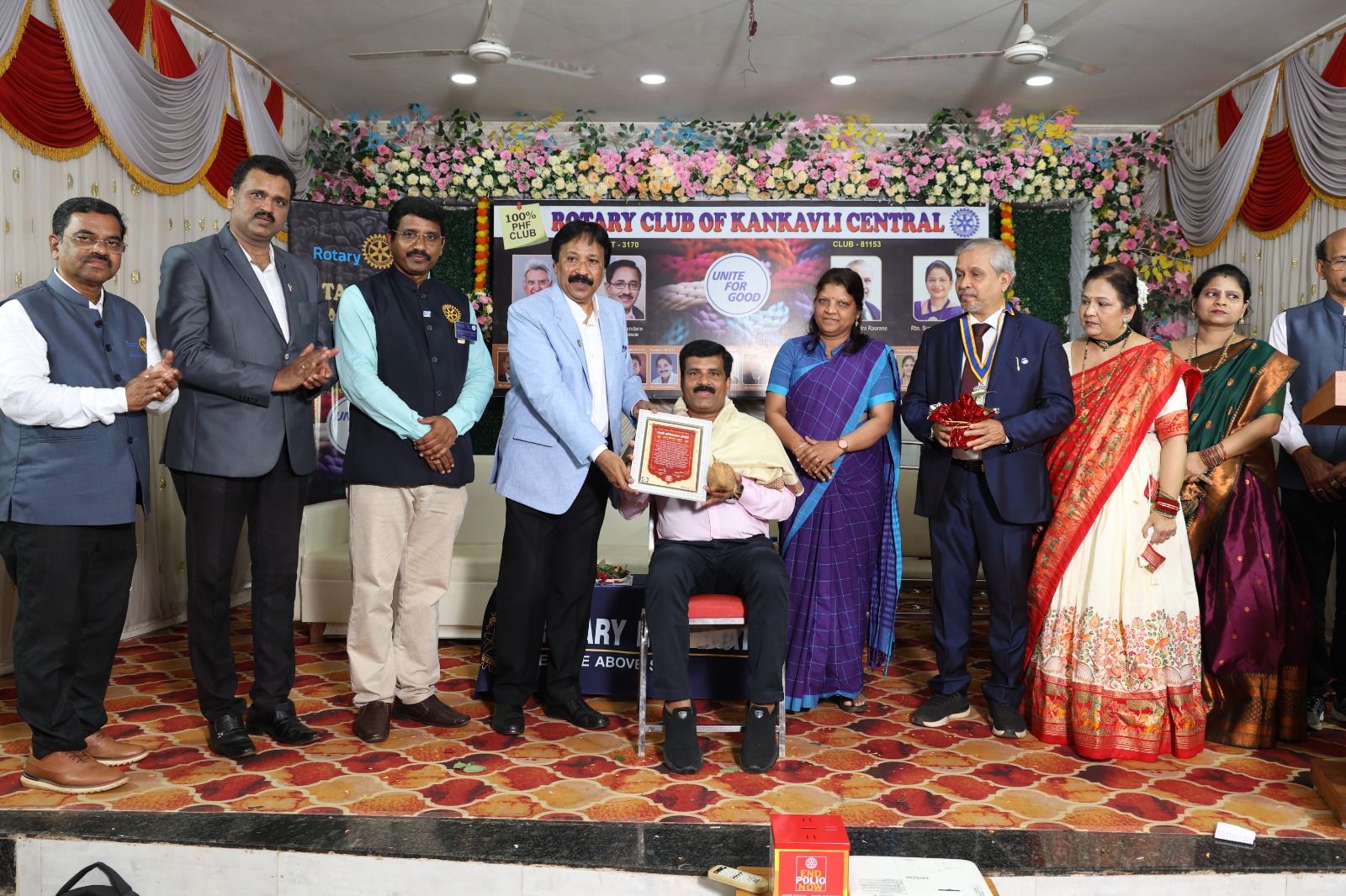 यावेळी रोटरी क्लब कणकवलीचे प्रेसिडेंट ऍड. राजेंद्र रावराणे, सेक्रेटरी सुप्रिया नलावडे, ट्रेझरर ऍड गुरुनाथ पावसकर, रोटरीयन डॉ विद्याधर तायशेट्ये, डॉ सुहास पावसकर, ऍड दीपक अंधारी, सचिन मदने, मेघा गांगण ,राजश्री रावराणे, राजन चव्हाण यांच्या पत्नी कवयित्री सरिता पवार उर्फ ऋजुता चव्हाण आदी उपस्थित होते. राजन चव्हाण हे बी निगेटिव्ह या दुर्मिळ रक्तगटाचे रक्तदाते आहेत. वयाच्या सव्वा अठराव्या वर्षापासून त्यांनी तब्बल 30 वेळा गरजू रुग्णांना तातडीने रक्तपेढीत जाऊन रक्तदान केले आहे. बी निगेटिव्ह हा दुर्मिळ रक्तगट आहे. गरजू रूग्णांना त्यांचे जीव वाचवण्यासाठी तातडीने रक्तपुरवठा होणे गरजेचे असते. बी निगेटिव्ह हा रक्तगट दुर्मिळ असल्यामुळे तात्काळ रक्तदाता उपलब्ध होणे थोडे कठीण असते. पत्रकार राजन चव्हाण यांनी आजवर अपघात, शस्त्रक्रिया, गरोदर महिलांची प्रसूती, थॅलेसेमियाग्रस्त रुग्ण, हिमोग्लोबिन चे प्रमाण कमी असलेल्या रूग्णांना मानवतावादी दृष्टिकोनातून तातडीने प्रवासाची पदरमोड करून सिव्हिल रुग्णालय ओरोस, सावंतवाडी उपजिल्हा रुग्णालय, लाईफटाईम हॉस्पिटल पडवे, नागवेकर हॉस्पिटल कणकवली येथे जाऊन रक्तदान केले आहे. पत्रकार राजन चव्हाण यांनी सामाजिक जाणिवेने आजवर 30 वेळा केलेल्या रक्तदानाची दखल घेत त्यांना रोटरी क्लब कणकवली सेन्ट्रल च्या वतीने व्होकेशनल कम्युनिटी अवॉर्ड 2025 ने सन्मानित करण्यात आले. या पुरस्काराबद्दल राजन चव्हाण यांचे सर्व स्तरातून अभिनंदन होत आहे.