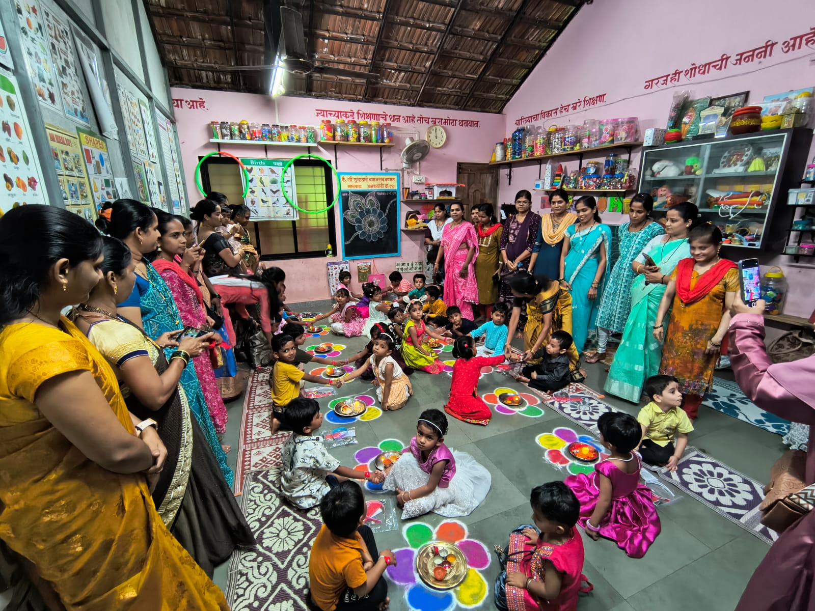 या सोहळ्यात सावी नेवगी, गोरक्ष नाईक, समर्थ काष्टे, समर्थ नेवगी, जीविका कदम, अनिशा दापले, अनन्या चव्हाण, दुर्वा गावडे, दुर्वा कोरगावकर, दुर्वाश जाधव, श्रुती गावडे, प्रिशा देशमुखे, अर्पिता कडगावकर, साईशा चव्हाण यांसारख्या चिमुकल्यांचा सहभाग होता. त्यांच्यासोबत त्यांच्या मातांनीही कार्यक्रमात उत्साहाने भाग घेतला. यामध्ये सौ. जानवी गावडे, स्वानंदी नेवगी, हिना शेख, धनश्री पाटील, नेहा काष्टे, श्रेया नेवगी, आर्या मुंज, तन्वी कदम, ज्योती कदम, सानिका मातोंडकर, अन्विता गोरे, तेजस्विनी चव्हाण, आणि रेशमा मेस्त्री यांचा समावेश होता.या अनोख्या उपक्रमामुळे अंगणवाडीतील मुलांमध्ये भारतीय सण आणि परंपरांची ओळख निर्माण झाली.