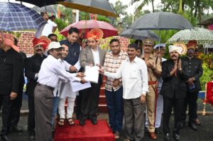 वन्य प्राण्यांपासून संरक्षण करण्यासाठी शेती संरक्षण शस्त्र परवान्यांची परवानगी प्रक्रीया जिल्हा प्रशासनातर्फे नियमित केल्या जाते. शेतकऱ्यांचे वन्य प्राण्यांपासून संरक्षण व्हावे तसेच त्याच्या पिकांचे रक्षण व्हावे, यासाठी पात्र शेतकऱ्यांना जिल्हा प्रशासनातर्फे नियमानुसार शस्त्र परवाना दिल्या जातो. या अनुषंगाने स्वातंत्र्य दिनाचे औचित्य साधून पालकमंत्री नितेश राणे यांच्या हस्ते पात्र नवीन तसेच मृत पररवानाधारक व्यक्तींच्या वारसांना शेती संरक्षण परवान्यांचे वितरण करण्यात आले.