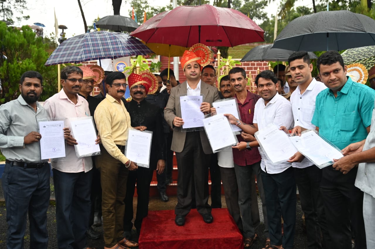 सिंधुदुर्ग (जिमाका) : स्वातंत्र्य दिन समारंभ निमित्त पालकमंत्री नितेश राणे यांच्या हस्ते ९ पात्र शेतकऱ्यांना शेती संरक्षणार्थ शस्त्र परवान्यांचे वितरण करण्यात आले. यावेळी जिल्हाधिकारी अनिल पाटील, मुख्य कार्यकारी अधिकारी रवींद्र खेबुडकर, पोलिस अधीक्षक मोहन दहीकर आदी उपस्थित होते.