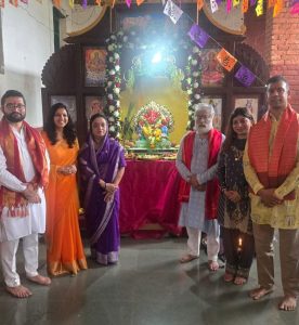 पुरोहित शरद सोमण यांच्या मंत्रोच्चारात गणरायाची प्राणप्रतिष्ठापना करण्यात आली. यानंतर पूजन, आरती, भजन आदी कार्यक्रम पार पडले. यावेळी राजघराण्याकडून गणरायाला मोदकांसह नैवैद्य अर्पण करण्यात आला.