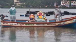 ‘गणपती बाप्पा मोरया, पुढच्या वर्षी लवकर या’च्या जयघोषात लाडक्या बाप्पाला निरोप देण्यात आला. गुरूवार सायंकाळनंतर मोती तलावात बाप्पाचे विसर्जन करण्यात आले. रात्री उशिरापर्यंत गणेशमूर्ती विसर्जन सुरू होते. राजघराण्याच्या ऐतिहासिक गणरायाचं देखील राजघराण्याच्या उपस्थितीत विसर्जन करण्यात आले. राजवाडा व राजश्री तिसरे खेमसावंत यांच्या माठ्यातील गणपतीचे विसर्जन करण्यात आले. वाजत, गाजत मिरवणूक काढत श्रींना निरोप देण्यात आला. यावेळी राजेसाहेब खेमसावंत भोसले, राणीसाहेब शुभदादेवी भोसले, माजी उपनगराध्यक्षा अन्नपुर्णा कोरगावकर, माजी नगरसेविका ॲड. पुष्पलता कोरगावकर, काका मांजरेकर, पुरोहित शरद सोमण, सिताराम गवस, सचिन कुलकर्णी, अखिलेश कोरगावकर आदींसह गणेशभक्त उपस्थित होते.