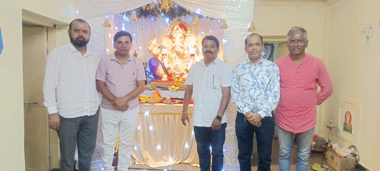 शिवसेनेचे जिल्हा प्रमुख बाबुराव धुरी यांच्या गणरायाचे विधानसभा प्रमुख रुपेश राऊळ यांनी घेतले दर्शन.