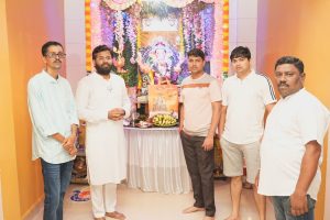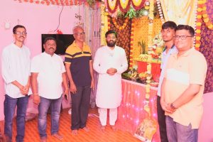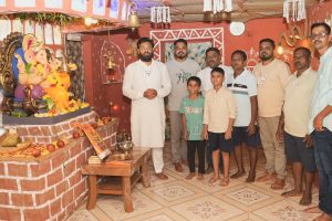 दरम्यान जनसामान्यांच्या विविध प्रश्नांसाठी गणरायाने आपणाला योग्य दिशा देऊन तळ कोकणातील युवा वर्गाचे प्रश्न सोडविण्यासाठी सकारात्मक ऊर्जा प्रधान करावी, असे साकडे युवा नेते विशाल परब यांनी बाप्पा चरणी घातले.