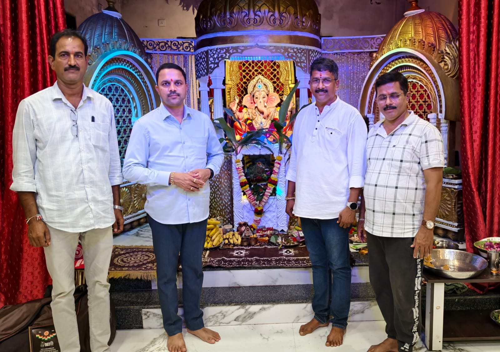 सावंतवाडी : सिंधुदुर्ग जिल्हा बँकेचे अध्यक्ष मनीष दळवी यांनी सावंतवाडी तालुका पत्रकार संघाचे अध्यक्ष सचिन रेडकर यांच्या मळगाव रेडकर वाडी येथील निवासस्थानी विराजमान झालेल्या श्री गणेशाचे दर्शन घेतले. यावेळी रेडकर कुटुंबीयांनी मनीष दळवी यांचे स्वागत केले.